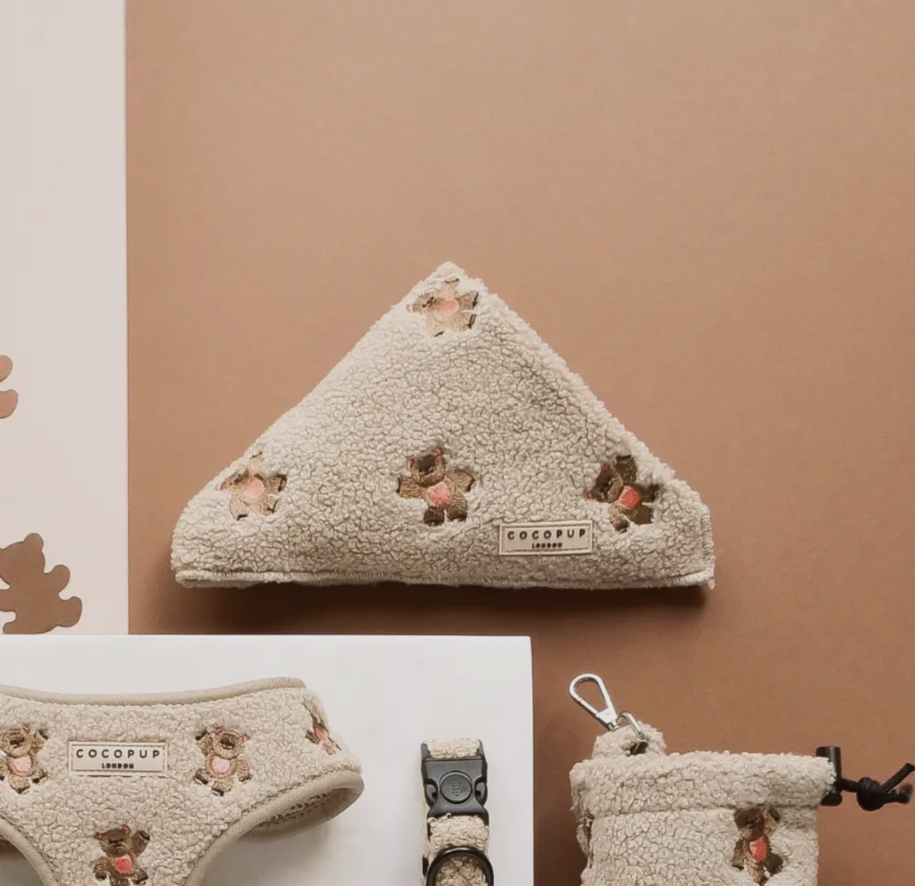 Deze geborduurde teddy bandana is schattig en zacht en geeft elke hondenoutfit een speels tintje. Perfect voor een heerlijke wandeling in het park.
