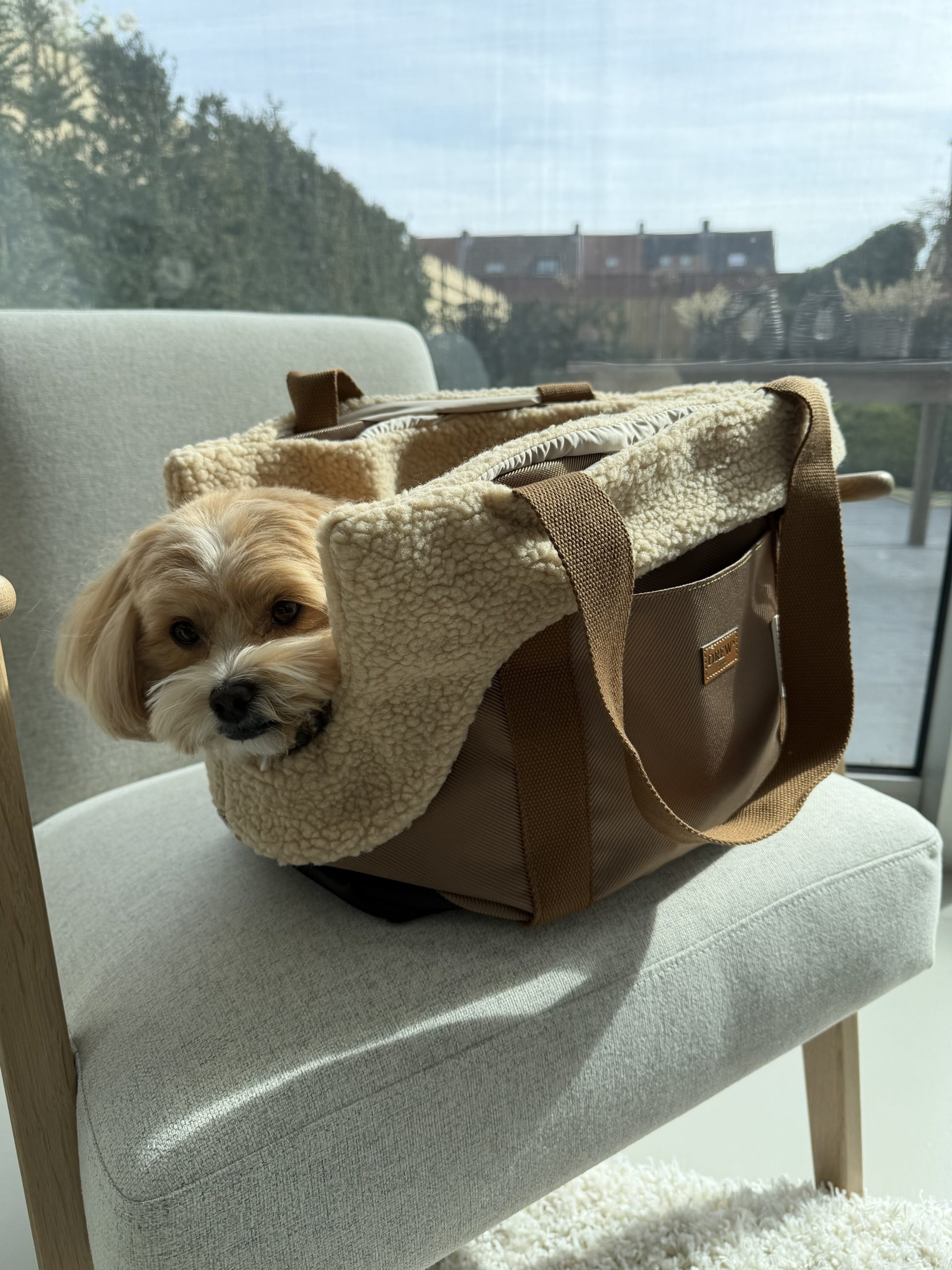 Sportieve en stijlvolle hondentas, ontworpen om je hond op een praktische en comfortabele manier mee te nemen.