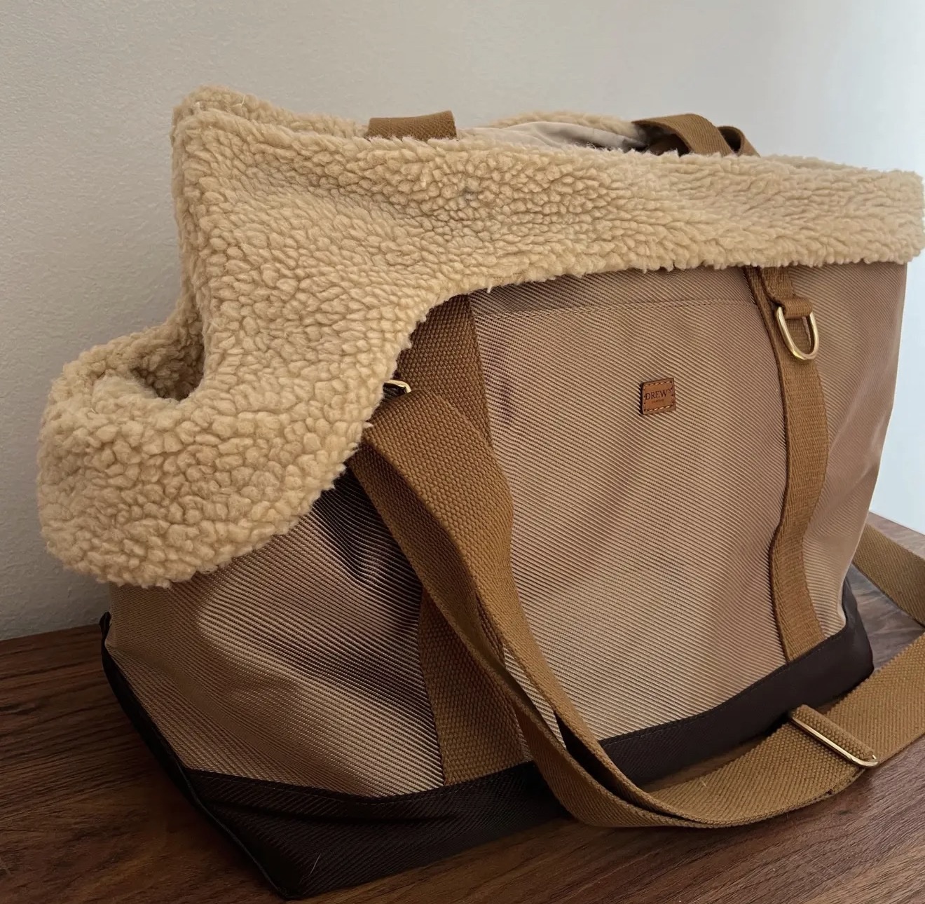 Deze tas is ideaal voor reizen, stadsuitjes of dagelijkse wandelingen. De tas is voorzien van schouderriemen, een crossbodyriem, vakken, een interne koord om je hond vast te zetten en een D-ring voor het vastmaken van een zakje voor hondenzakjes, een lekkernijenzakje of iets dergelijks.