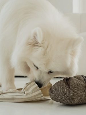 Maak kennis met onze nieuwe en gelimiteerde Mr. GINGERBREAD. De sjaal is gekreukt en afneembaar voor extra speelplezier! Interactief speeltje met scrunch en pieper.