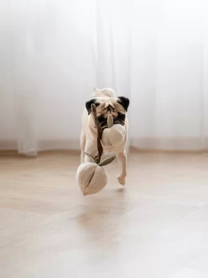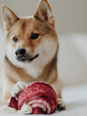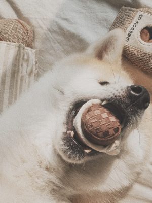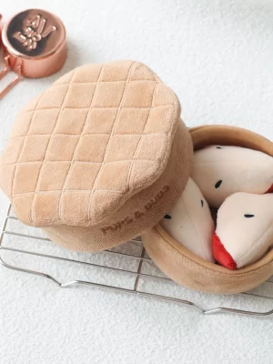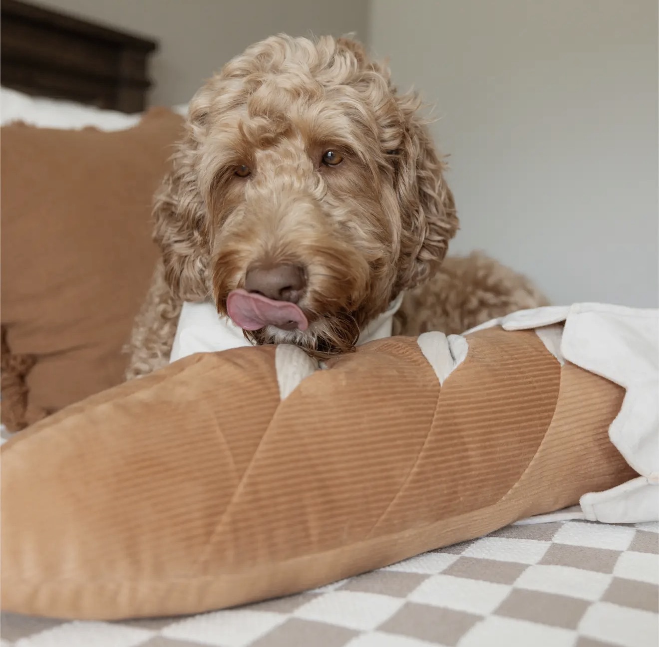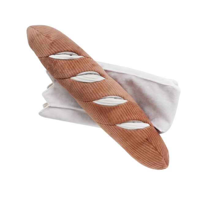 Dit snuffel stokbrood wordt geleverd met een kreukelig papieren zakje waarin je nog meer lekkernijen kunt bewaren of verbergen!