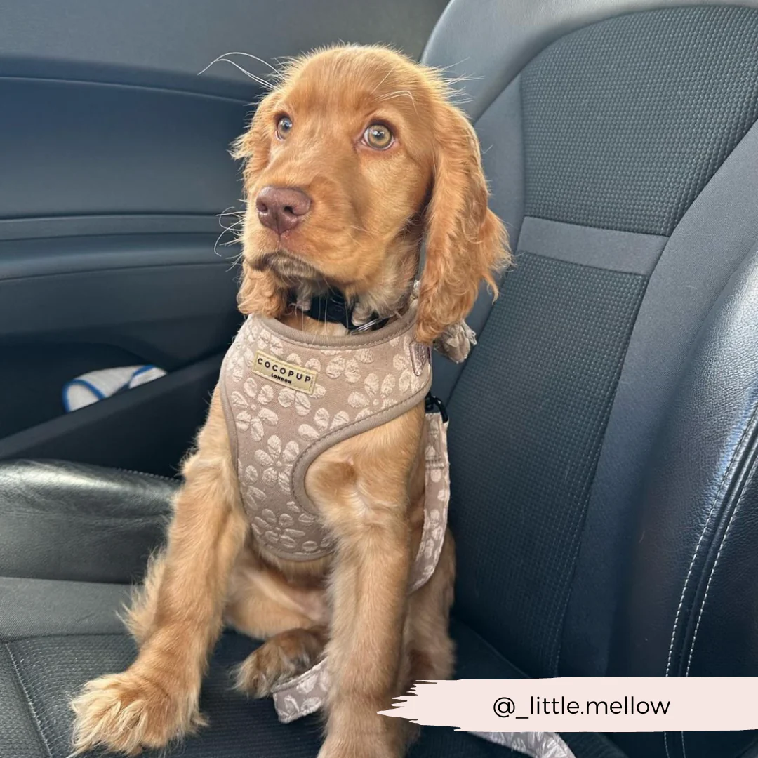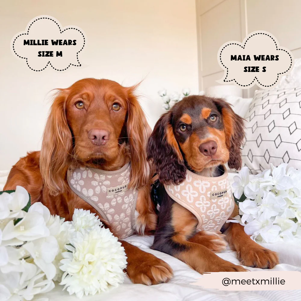 Maak kennis met het Mokka Bloem LUXE Verstelbare harnas. Dit stijlvolle ontwerp zal hoofden doen omdraaien met zijn prachtige mokkakleurige bloemenpatroon. Gesp vast en maak je pup klaar om in stijl te bloeien!