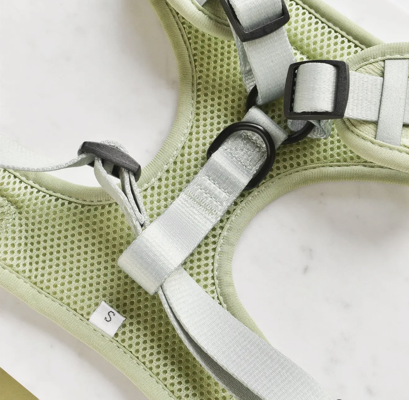 - Zwarte D-ring voor het bevestigen van de riem